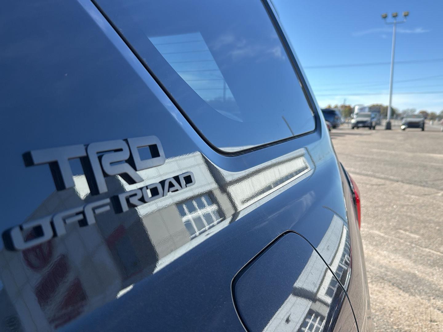 - Black honeycomb-style grille, mirror caps, door handles, and overfenders; color-keyed rear spoiler; black "TRD OFF ROAD" and "4RUNNER" badges