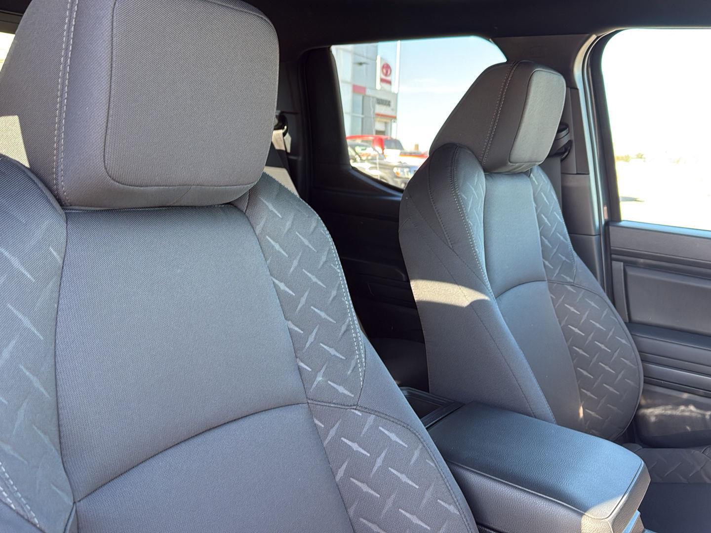 - Fabric-trimmed seats; 6-way manually adjustable driver and front passenger seats with 2-way power-adjustable lumbar support on driver's seat only